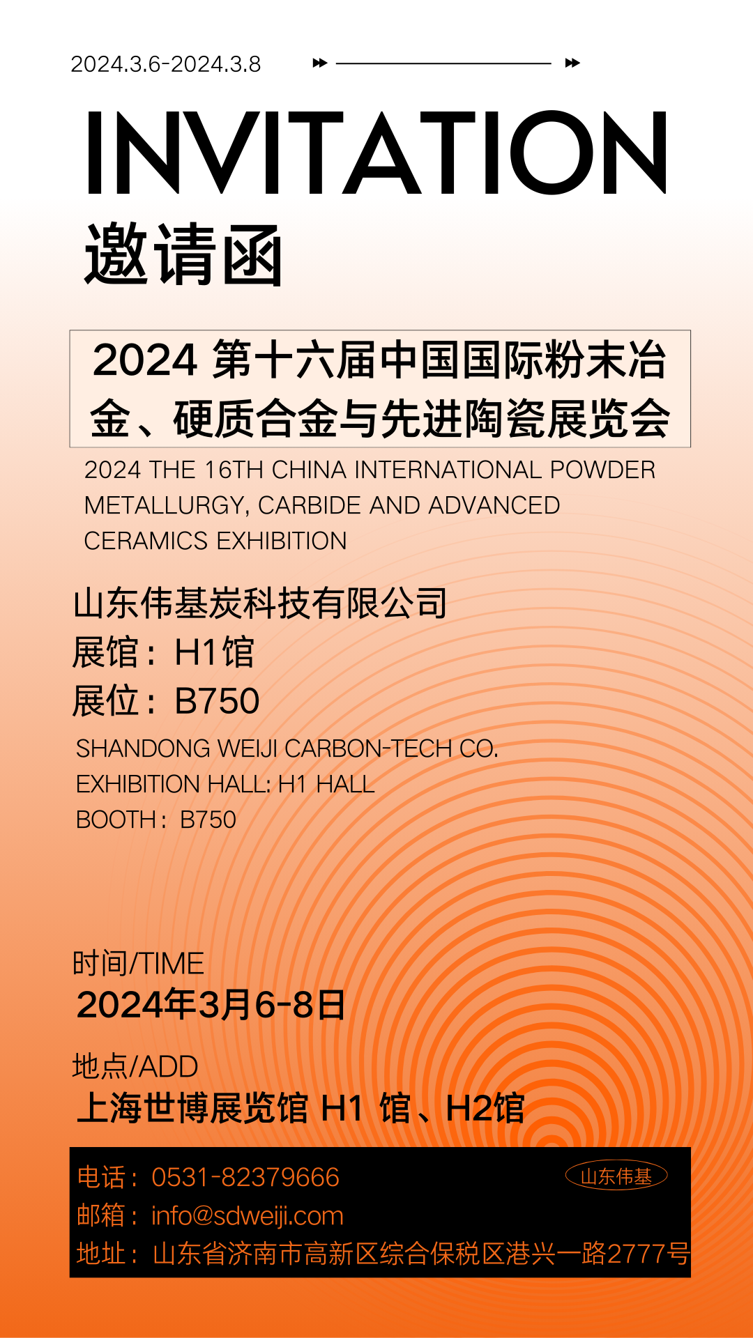 山東偉基將參加2024第十六屆中國國際粉末冶金、硬質合金與先進陶瓷展覽會,歡迎您的蒞臨。